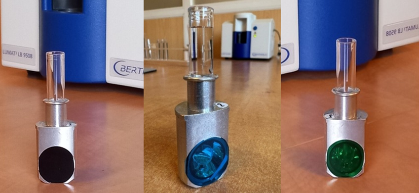 Luminomètre Berthold Lumat LB 9508 à haute sensibilité (il détecte des intensités lumineuses inférieures à 10⁻¹⁶ W/cm²!) qui mesure l’intensité lumineuse (réactions de bioluminescences) dans la gamme spectrale 380-630 nm (lumière visible) et un tube photomultiplicateur (PMT) pour la démultiplier (le Luminomètre est capable de détecter la lumière d’une bougie à 300 km !). La lumière peut être quantifiée et son intensité exprimée en nombre de photons convertis en RLU (Relative Light Units = Biophotons), soit le nombre de photons émis par seconde et par cm2. Le luminomètre est piloté par le logiciel ICE. 11 mesures indépendantes ont été réalisées pour chaque échantillon afin de garantir une reproductibilité statistiquement significative.