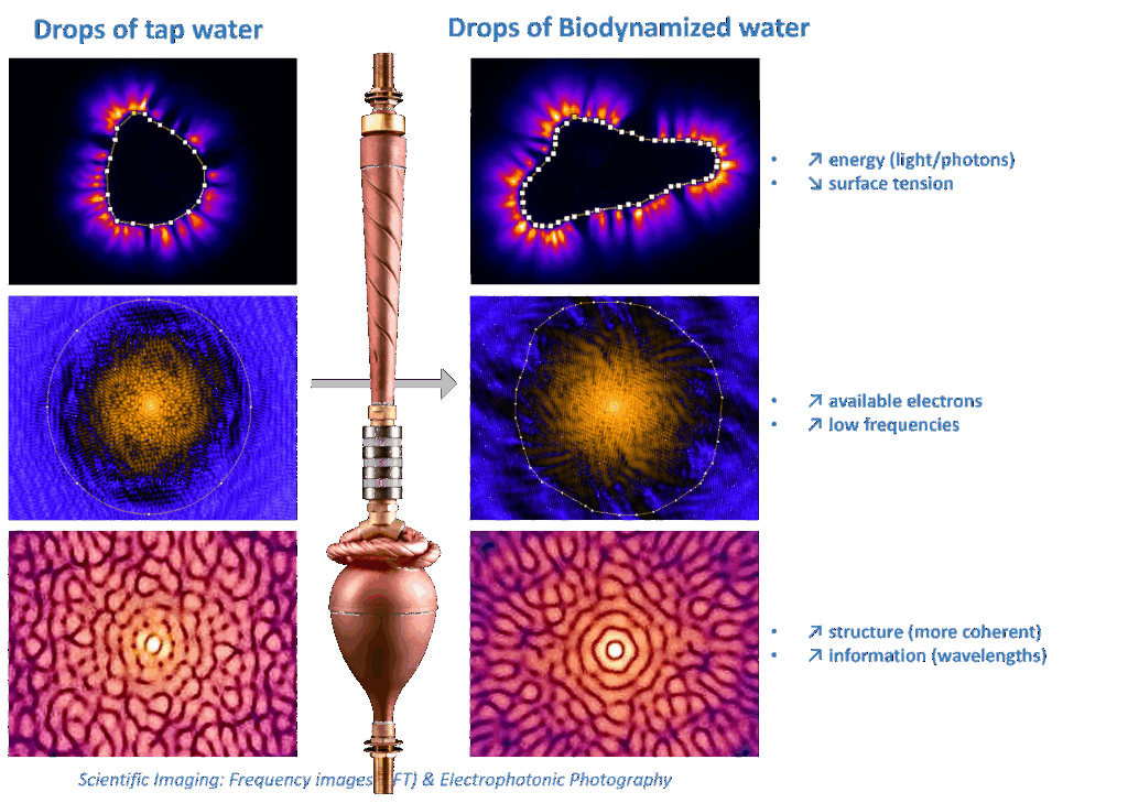 This therefore implies validation of the conclusions of the electrophotonic analysis, which confirms the benefits of water biodynamization using the Biodynamizer in terms of: