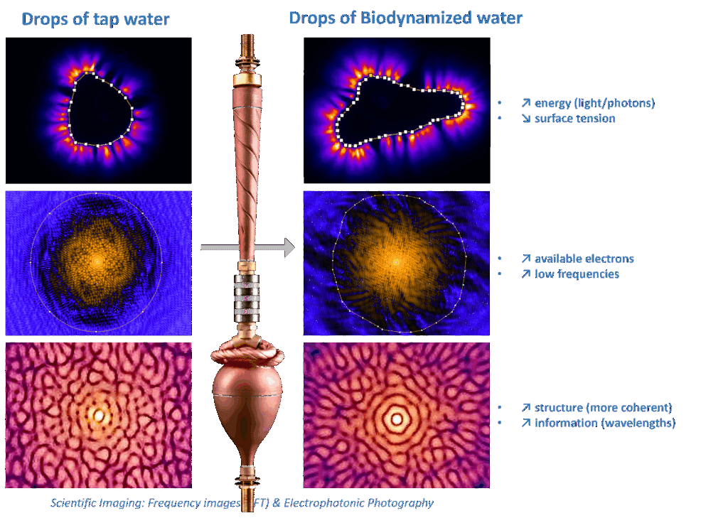 This therefore implies validation of the conclusions of the electrophotonic analysis, which confirms the benefits of water biodynamization using the Biodynamizer in terms of: