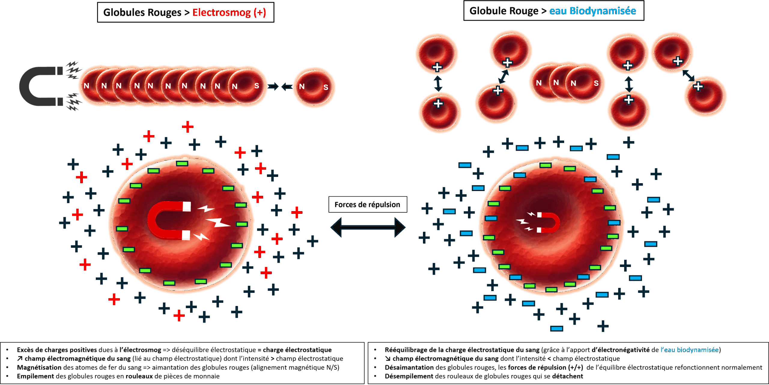 - la dynamisation améliore la diffusion d’oxygène dans l’organisme grâce au désempilement des rouleaux de globules rouges !