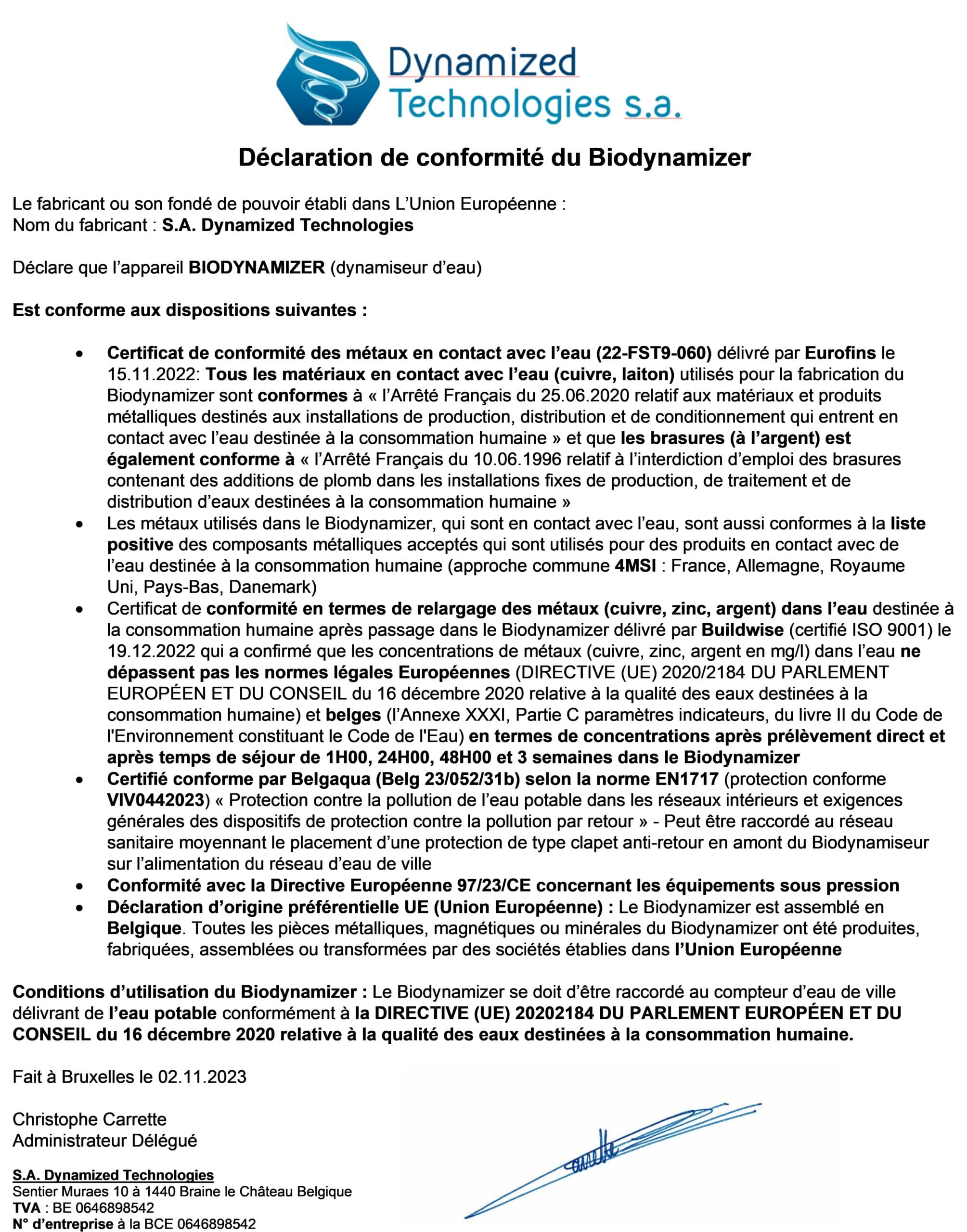 Certifications Biodynamizer
