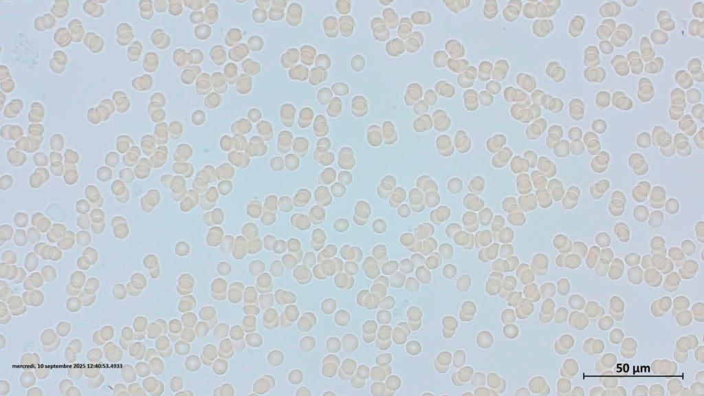Vergelijkende analyse van rode bloedcellen (Dr. J-C Lebel, analyse uitgevoerd in Viry op 25-07-2025):